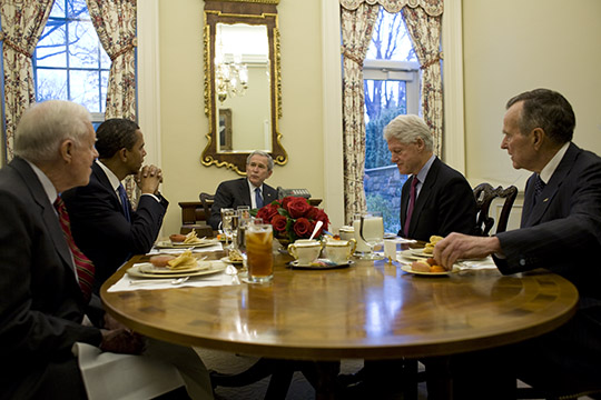 President George H. W. Bush retired with his wife Barbara in Houston. He refused to publish a memoir, but he delivered many speeches and received many awards, including the Presidential Medal of Freedom from President Obama in 2011. He and President Bill Clinton later became good friends. President Bush died in November 2018.