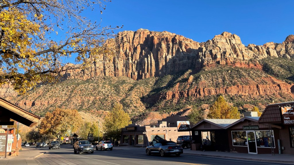 Travel Info: For most of the year, Zion Canyon (where most people visit) is closed for private cars. The only exceptions are in December, January, and mid-February (check Zion National Park website for the exact dates), or if you stay in Zion Lodge. From May to September, about half a million visitors come every month. The Visitor Center parking lot is often full by 9 AM, and sometimes people must wait for an hour to ride the shuttle bus. But by November, the visitor number drops to half of that. We had neither trouble finding parking spaces nor long wait for the bus during our two-day visit.